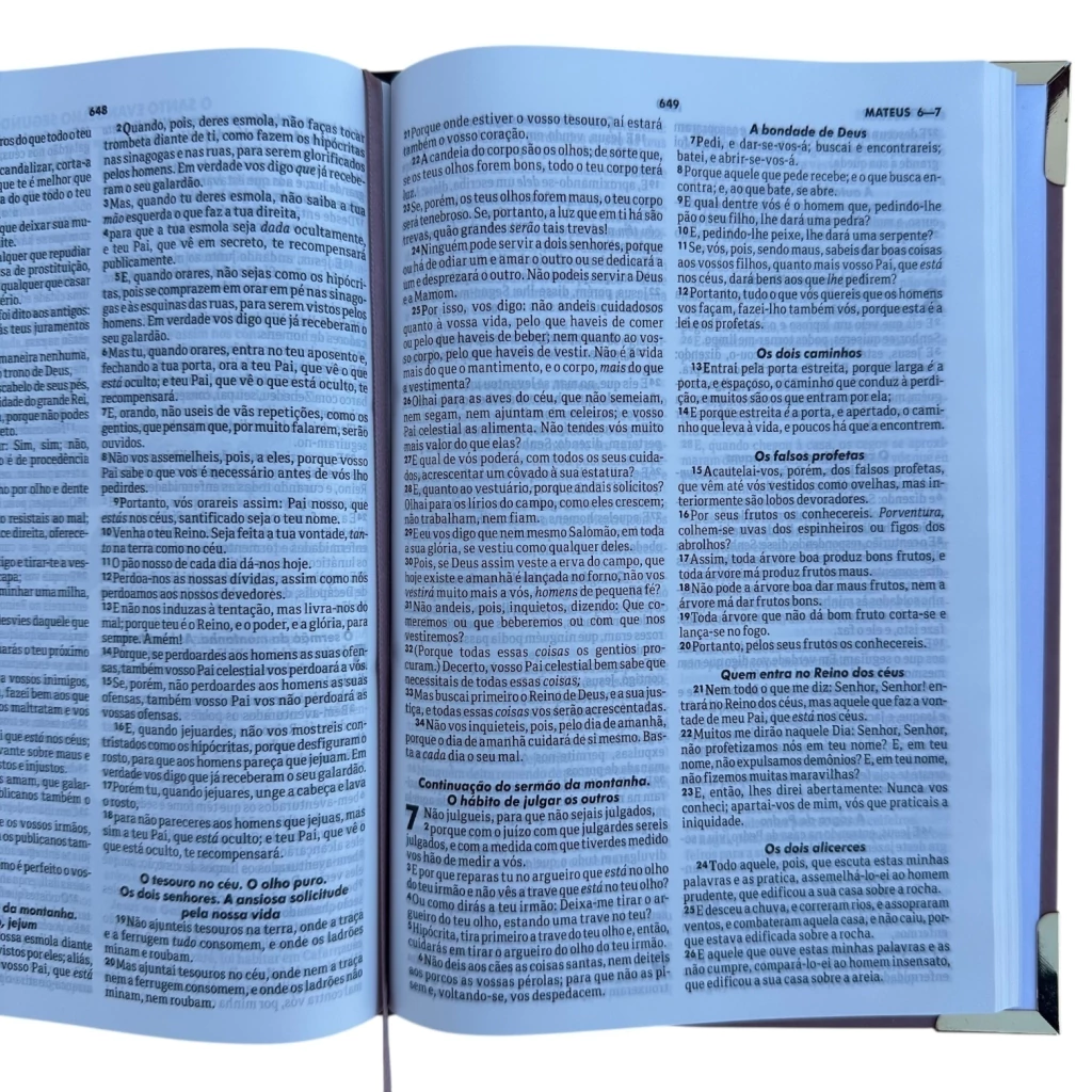 Essa edição da Bíblia Sagrada contém texto bíblico na tradução Almeida Revista e Corrigida, é uma linguagem formal e original para quem deseja aprofundar seu relacionamento com Deus.
