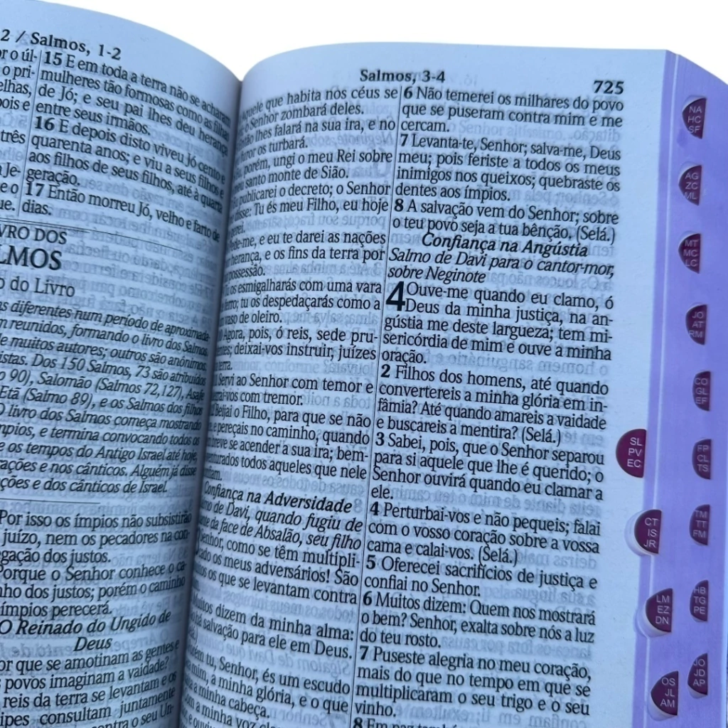 A Bíblia vai com indice digital para auxiliar na procura dos livros