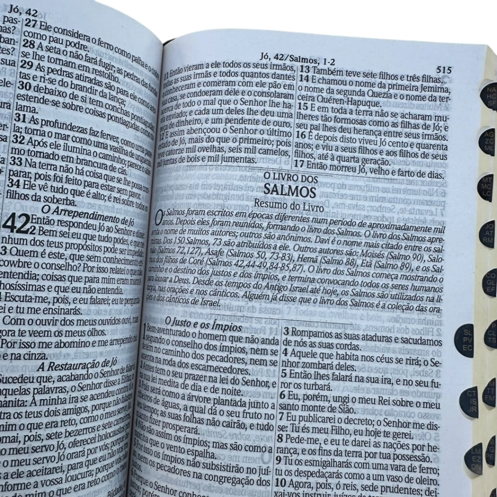 A Bíblia vai com indice digital para auxiliar na procura dos livros