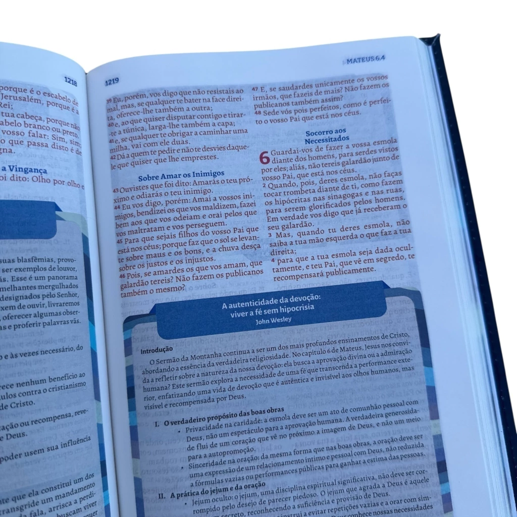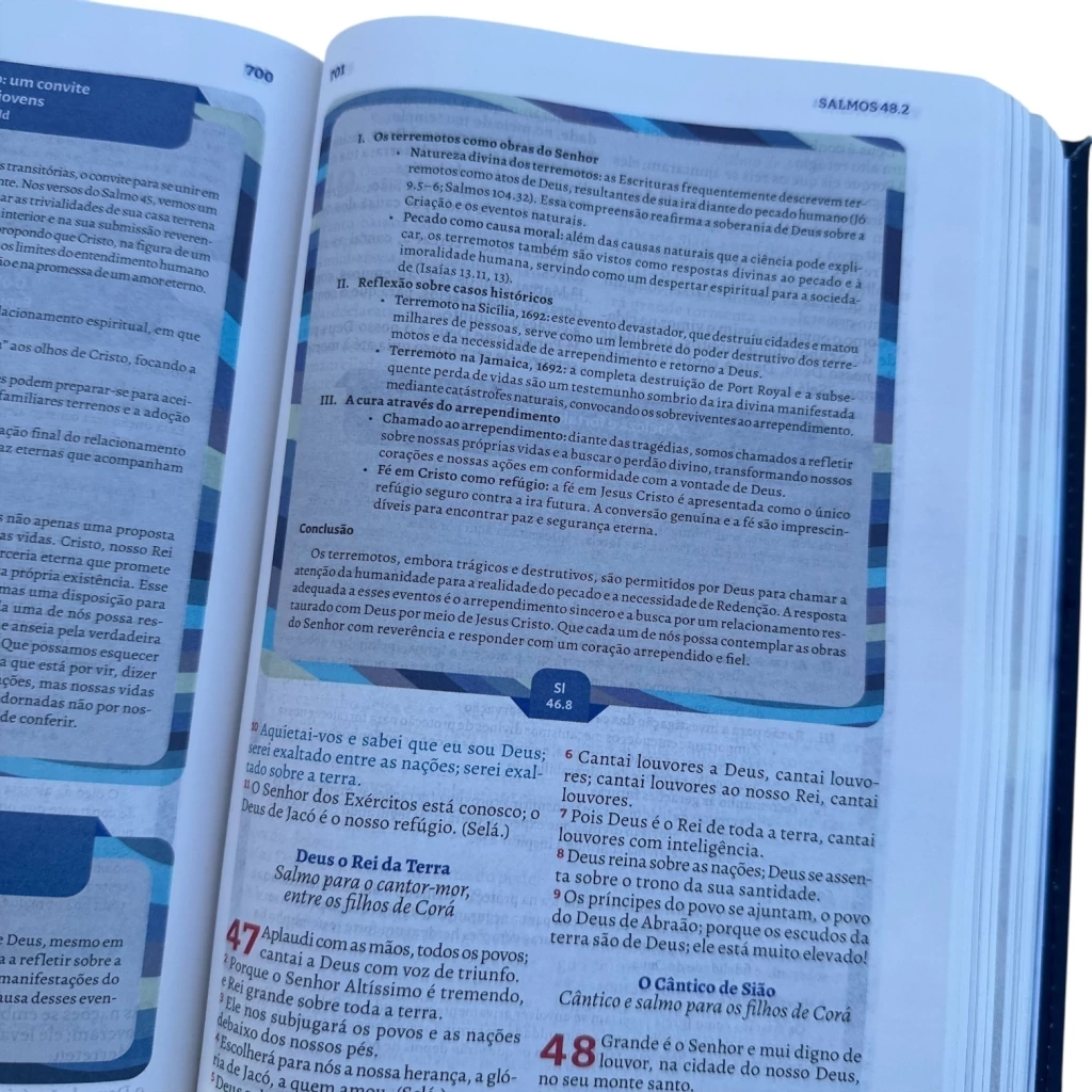 Além disso, a Bíblia conta com tecnologia full color, proporcionando uma leitura mais agradável e visualmente rica e também incluindo mapas.