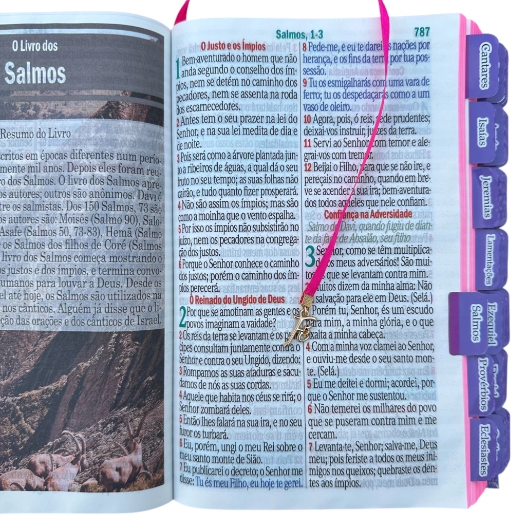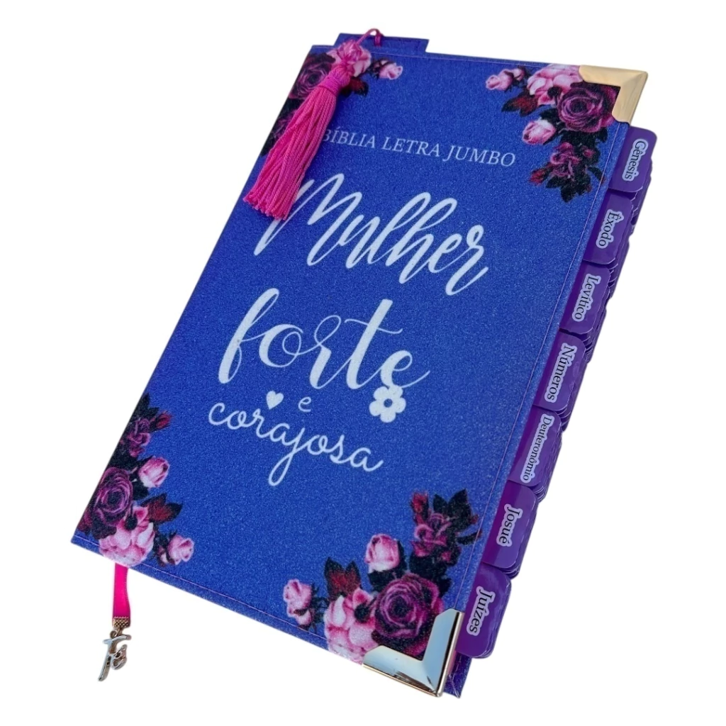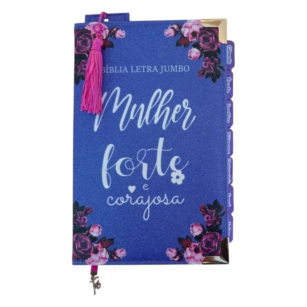 Agora em capa produzida por nossa equipe, pensada em cada detalhe, com acabamento 100% glitter em capa dura acolhoada e cantoneiras douradas, com frase Forte e corajosa, inspirada na passagem Josué 1:9 . A lateral da Bíblia é na cor rosa, contém fitilho para marcação da passagem bíblica, além de abas aplicadas.