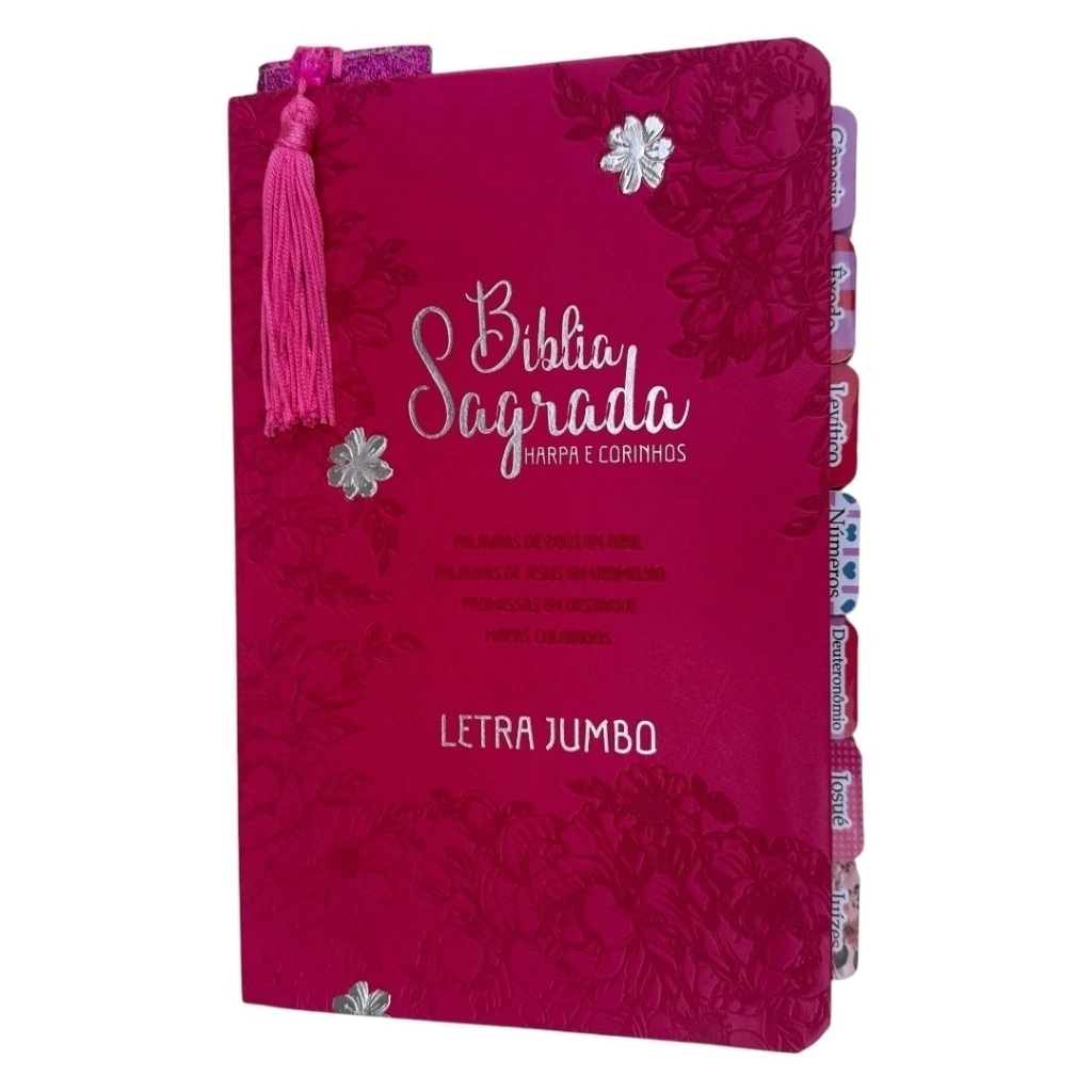 Bíblia letra jumbo. Uma das maiores letras que existe, agora produzida por nossa equipe com abas adesivas já aplicada + 1 marca páginas glitter pink combinativo com a capa.