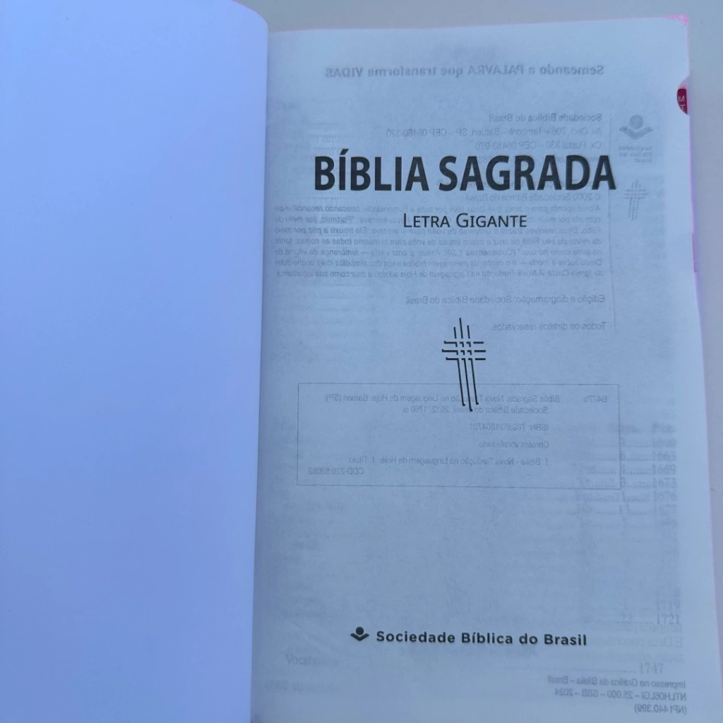 Medição: 21×14 cm | Letras gigantes | Capa dura acolchoada | Versão NTLH: Nova tradução linguagem de hoje | SBB | Indice digital | Central das Bíblias