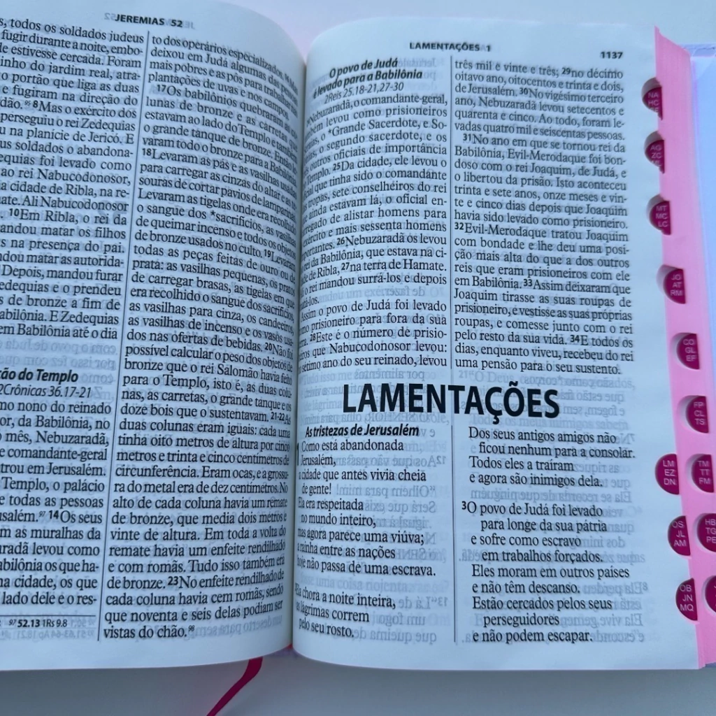 A Bíblia vai com indice digital para auxiliar na procura dos livros