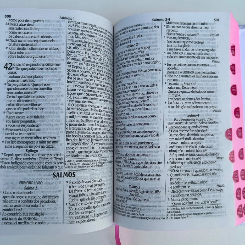 A Bíblia vai com indice digital para auxiliar na procura dos livros