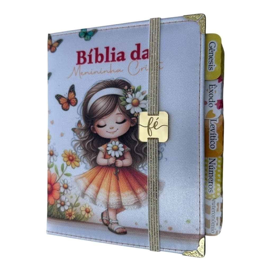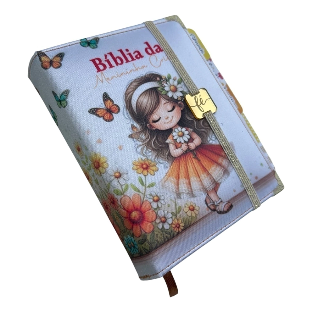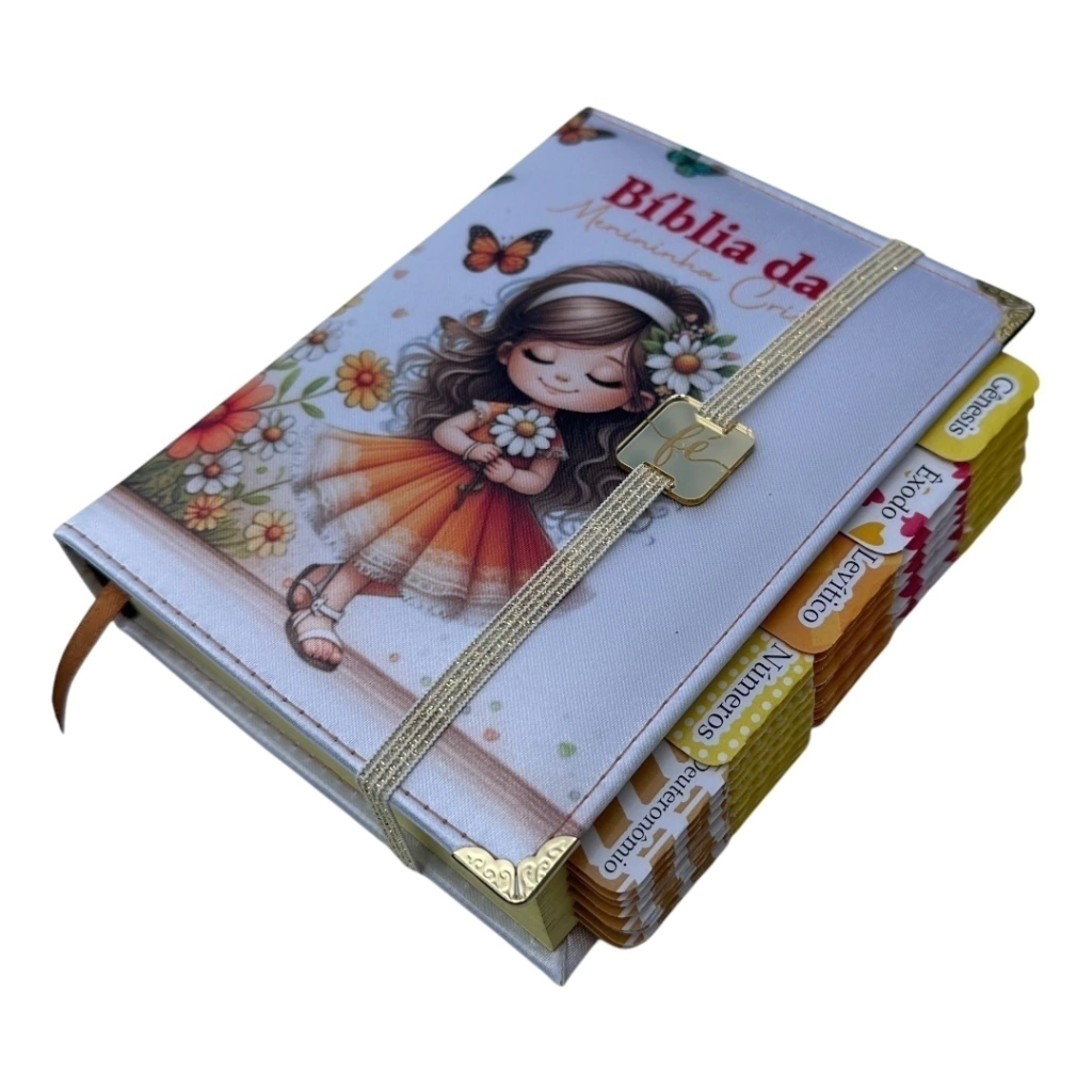 Bíblia Pequena da menininha cristã Capa dura acolchoada com Abas adesivas + elástico Com Harpa