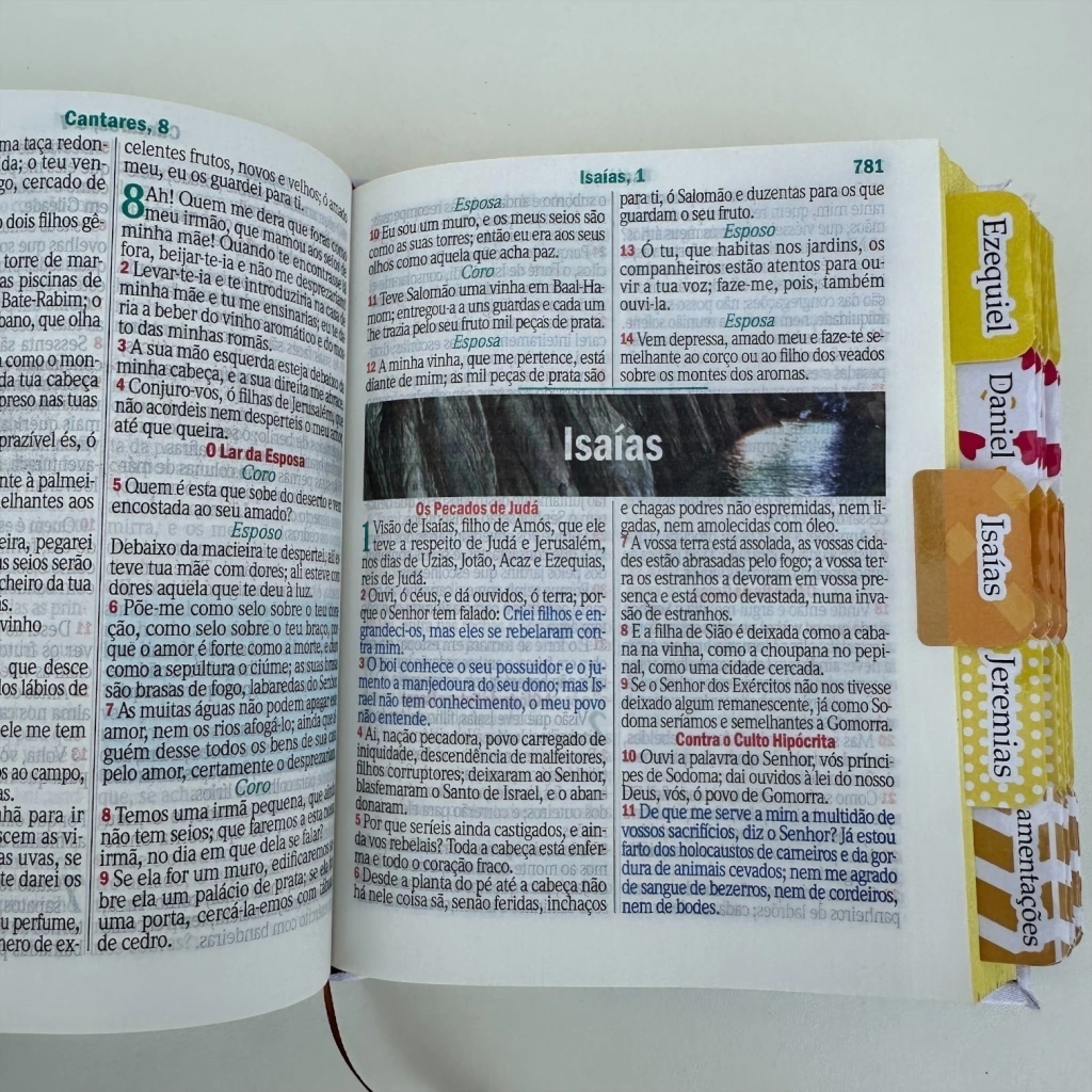 Além disso, a Bíblia já vai com Abas adesivas aplicadas para facilitar a procura dos livros.