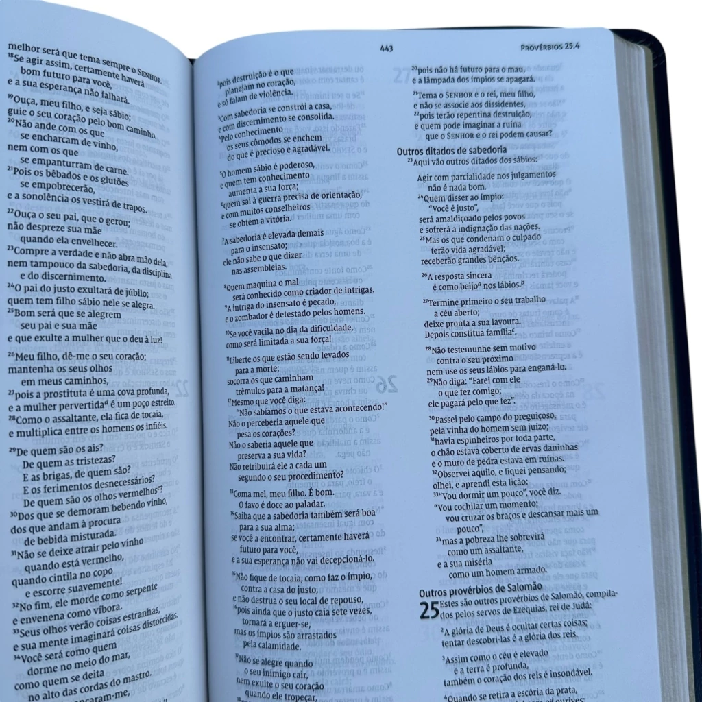 A Bíblia Sagrada Slim NVI Courosoft combina os benefícios de uma bíblia compacta com qualidade. Ela oferece uma leitura confortável, facilidade no manuseio, toque macio na capa e acabamento luxo.