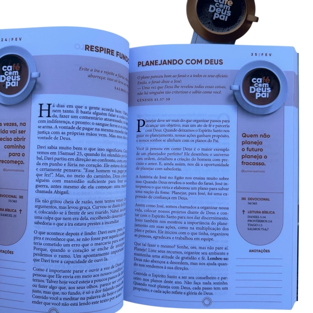Para tornar o seu dia ainda mais especial, frases inspiradoras são destacadas ao longo do livro, proporcionando motivação e encorajamento sempre que precisar. E para aqueles que desejam se aprofundar ainda mais na Palavra de Deus, também é incluso um plano de leitura bíblica, que o guiará por uma jornada de conhecimento e descoberta.