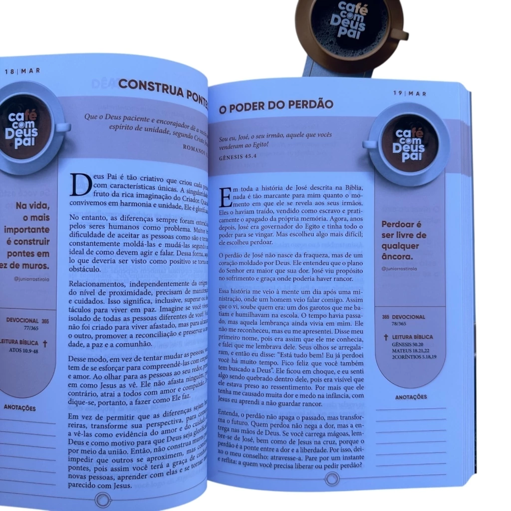 Essa é a experiência que você encontra em cada página de Café com Deus Pai 2026. São 366 mensagens que te levarão a uma jornada com devocionais diários ao longo do ano, onde você é convidado a ter um encontro com Deus Pai.