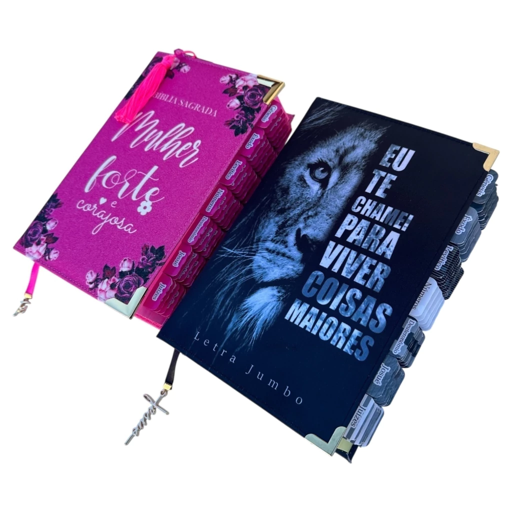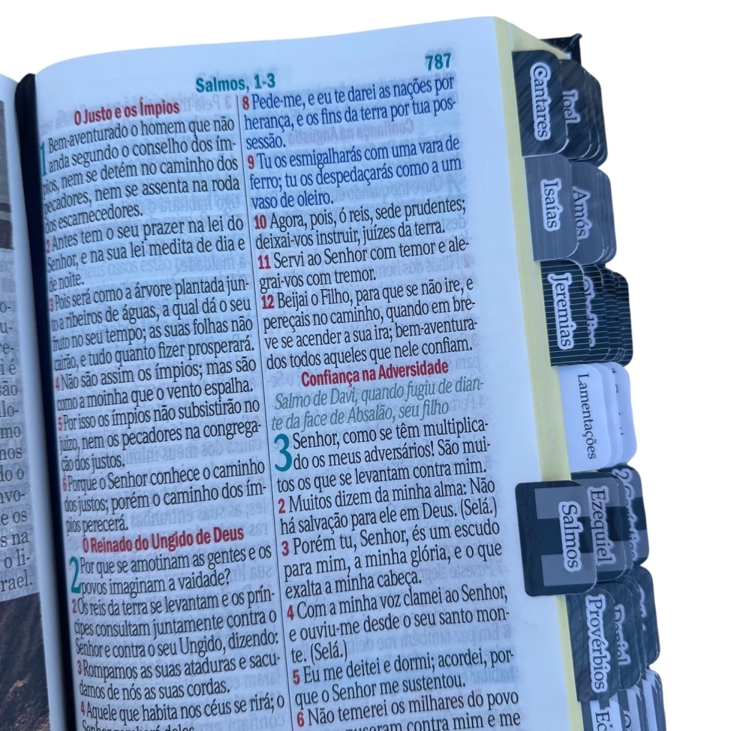 São Biblias que possuem acabamento premium, capa costurada para alta resistência, com Abas adesivas já aplicadas