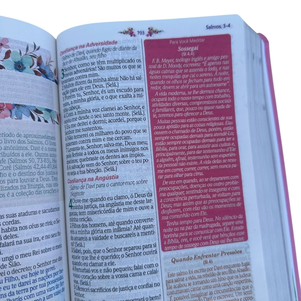 Esta Bíblia contém aplicações e estudos de acordo com cada versículo ou livro da Bíblia, tornando a sua leitura e entendimento muito mais agradável e fácil.